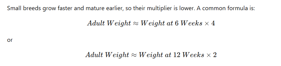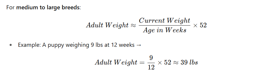 One widely used formula is the “doubling method” for medium to large breeds: