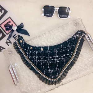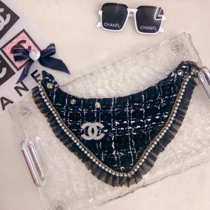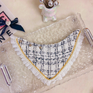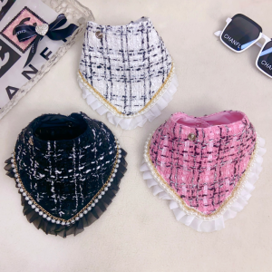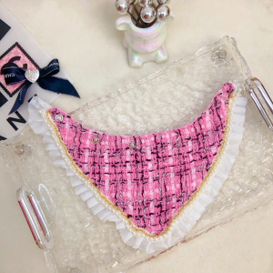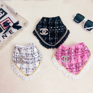 The Chewnel CC Logo Tweed Designer Dog Bandana is a chic accessory that brings luxury flair to your pup’s wardrobe. Crafted from elegant tweed fabric with ruffle trim and finished with the iconic CC metal logo, this bandana is made from a cotton and polyester blend for comfort and durability. Available in black, pink, and white, it’s perfect for small and medium-sized dogs.