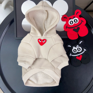 The Comme Des Pawcons Back Patch Designer Dog Hoodie brings playful style and comfort together in one must-have piece. Featuring a bold front cartoon patch and soft cotton-polyester construction, this designer hoodie gives your pup a fun streetwear look while keeping them warm and cozy. Available in red and beige, it’s perfect for medium and small-sized dogs with a love for fashion.