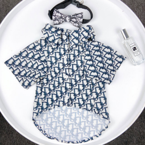 Made with human-grade quality, this designer dog shirt offers both comfort and standout style. The monogram design adds a luxury-inspired touch, while the matching bow completes the refined look. Lightweight and breathable, the Dogior Shirt With Bow is ideal for daily wear, photoshoots, or special occasions.