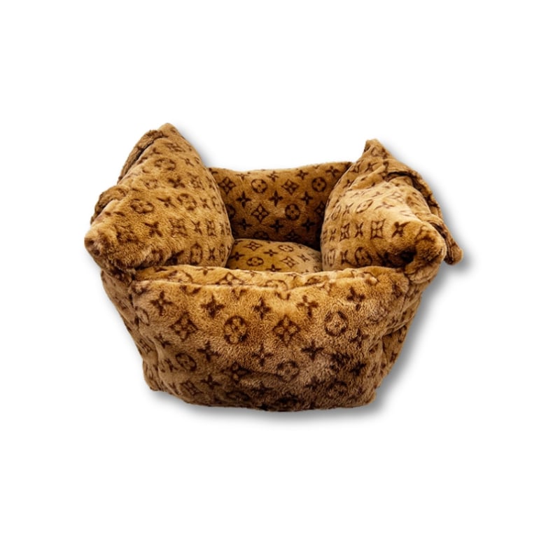 Louis Pawtton Fluff Monogram Portable Car Bed for Dogs