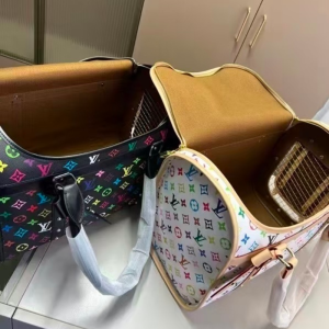 Travel in luxury with the Louis Pawtton Luxury Monogram Designer Dog Travel Portable Carrier. Featuring the iconic LV-inspired monogram design, this stylish dog carrier combines fashion and comfort for small and medium-sized dogs. The breathable side mesh panels ensure airflow, while the secure zipper closure keeps your pet safe on every trip. Lightweight and portable, it’s perfect for city strolls, vet visits, or vacations. Available in classic white and black, this designer travel bag brings elegance and practicality together for every pet parent on the go.