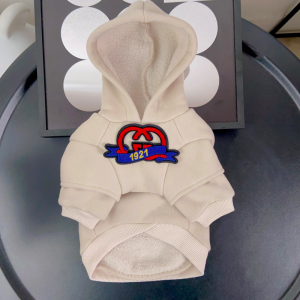 This designer dog hoodie brings high-end fashion to your pup’s wardrobe. The detailed GG patch adds a luxury edge, while the attached hood and pocket provide practical comfort and warmth. Available in beige and red, this Pawcci hoodie is the perfect statement piece for dogs who love to stand out in style.